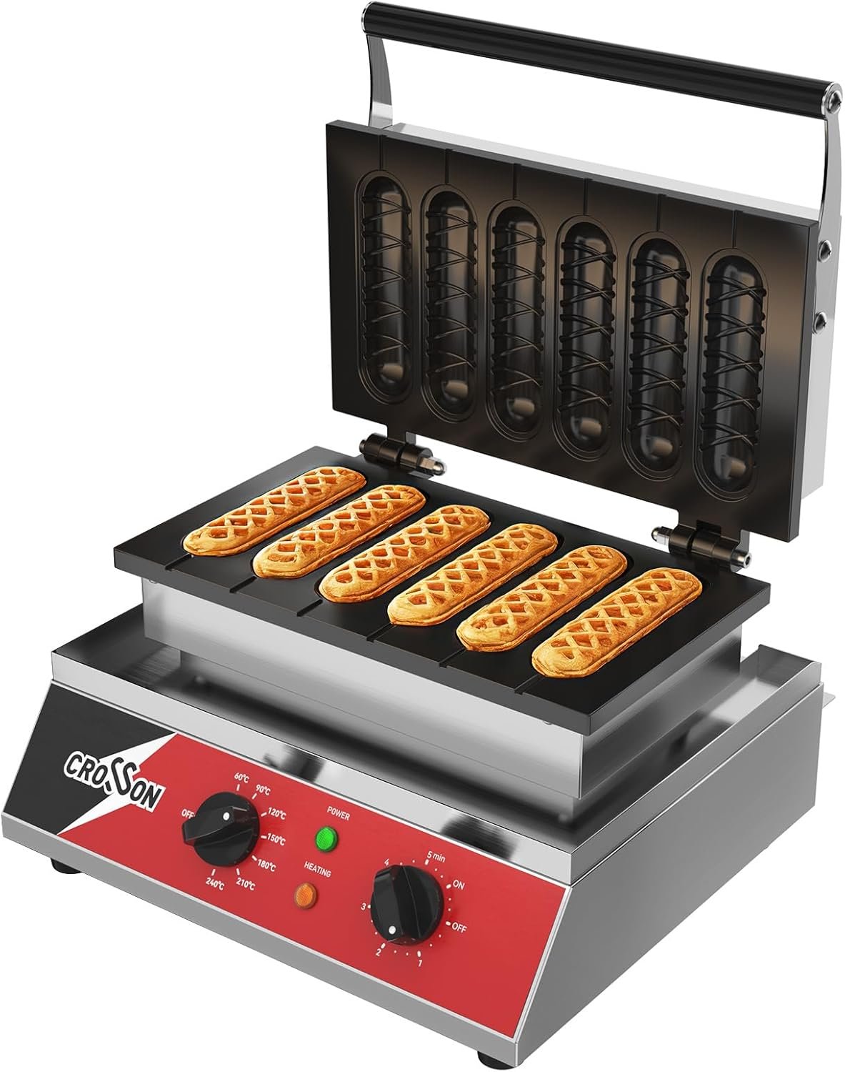 • 6格同时成型:一次输出6根棒状华夫饼,效率高,节省时间。